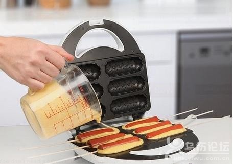 不管你是多么全能的主婦,也不可能在短短的幾分鐘內(nèi)就做出6個玉米熱狗吧!但有一種利器的出現(xiàn)讓你瞬間能變成全能主婦,而且每個玉米熱狗外形大小完全一致,好像工廠加工出來的一樣。其實想做到這一點并不難,你只需擁有一臺熱狗機就能實現(xiàn)。 這款玉米熱狗機直徑為10.2英寸,4.6英寸高,重量為6磅。每次可制作6個玉米熱狗。 制作玉米熱狗非常簡單,只需將調(diào)好的面糊倒入機器中,加上香腸,再倒上一層面糊,合上蓋子,片刻功夫就能享用美味的玉米熱狗了。 這款名為Corn Dog Factory的玉米熱狗機器目前在國內(nèi)沒有上市,國外網(wǎng)站上的價格為26.99美元,喜歡的朋友可以搜索一下,或是找朋友進行海外代購,相信這樣一款可愛的機器能給你的生活增添不少樂趣。 |