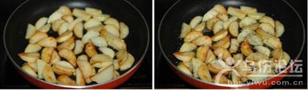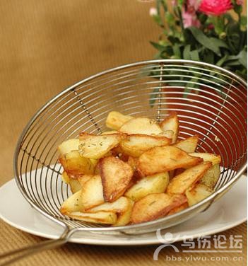 最近新土豆上市。在超市的時候正趕上土豆上新貨。我跟著一堆婆婆媽媽們擠一塊“搶”土豆。。。 人家都搶大個頭的,只有我,哪個小挑哪個。。。 一直都很喜歡這樣新鮮的小土豆,個頭勻稱,皮薄,又小巧又可愛。燒的時候,連皮都可以省掉不削。 今天這道迷迭香煎小土豆,除了土豆,只用到了鹽和迷迭香兩種調(diào)料。做法也很簡單,亦菜亦零食。 迷迭香煎小土豆 原料: 小土豆、鹽、迷迭香。 做法: 1、小土豆去皮洗凈,切成如圖所示的大塊。 2、平底鍋燒熱,放比平日炒菜量略多的食用油,燒熱。把土豆塊放進去鋪平。 3、煎至兩面金黃。 4、撒上鹽,迷迭香末翻勻略煎,讓土豆入味即可。 PS: 1、土豆如果新鮮,皮夠薄,不去皮也行。 2、切土豆的時候,要盡量做到切口大,塊兒薄,這樣煎的時候才好煎熟煎透煎至金黃。 3、煎土豆的時候,盡量中小火。 |
