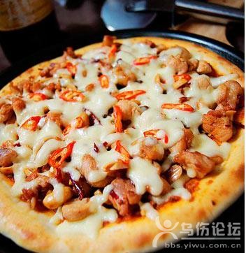 溫暖的陽光,就這樣坐在家中,美酒熱咖啡再來上一份中國味的披薩,份兒足又好味,濃濃的芝士、嫩滑的雞丁、搭配爽脆花生,帶來鮮辣香滑的繽紛口感,重磅好味道,好好享用吧! 餅底: 高筋粉250g、低筋粉50g、無鹽黃油15g、雞蛋液30g、酵母3g、白砂糖30g、清水130ml、奶粉10g。 餡料: 雞腿1個、酷客100新奧爾良腌料、麻辣花生一袋、醬油、安佳馬蘇里拉奶酪。 披薩醬: 豬肉末、黑胡椒、洋蔥、黃油、蒜末、番茄醬、番茄、鹽、披薩草各適量。 披薩醬: 1、將剝好皮的番茄切成小丁,洋蔥切成小丁。 2、鍋燒熱,放入黃油燒至溶化,放入豬肉餡、蒜末炒香,放入切成丁的番茄,大火翻炒。 3、倒入洋蔥末、番茄醬翻炒均勻。 4、待番茄炒出汁水后,調入黑胡椒粉、披薩草,翻炒均勻。 5-6、蓋上蓋,轉小火煮10分鐘左右,轉大火收汁成醬,加入鹽,翻炒均勻后即可。(煮的過程中不時打開鍋蓋翻炒一下,以免糊底。)