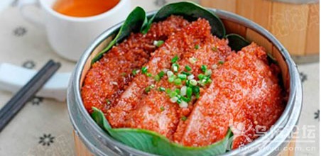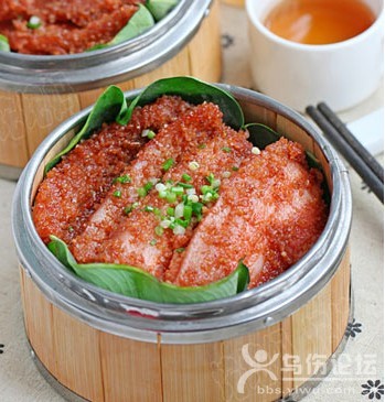 湖北素有“蒸菜之鄉(xiāng)”的之美譽(yù),著名的“沔陽三蒸”就是湖北的傳統(tǒng)名菜。 所謂“三蒸”一般來說是蒸魚、蒸肉、蒸青菜,傳統(tǒng)的做法一般是用米粉蒸。但蒸菜在湖北人手里,經(jīng)過百年的發(fā)展,已經(jīng)擴(kuò)展到遠(yuǎn)不止這三蒸,基本上天上飛的地上走的無一不可拿來蒸,其口味也從原來的單一白米粉蒸,發(fā)展到現(xiàn)在的紅糟、鼓香、剁椒、芝麻、鹵汁、南乳以及椒麻等多種口味。 “沔陽三蒸”起緣于舊時的沔陽州,也就是今天的天門、洪湖、潛江、仙桃一帶,相傳始自元末農(nóng)民起義領(lǐng)袖陳友諒的故事。當(dāng)時,陳友諒從家鄉(xiāng)沔陽率兵遠(yuǎn)征采石磯前夕,為了犒慰兵勇,鼓舞士氣,令隨軍包廚按“征”字做一些家鄉(xiāng)菜肴,寓意取得遠(yuǎn)征的勝利。聰明的廚師按“征”“蒸”同音不同字的意思做出了蒸魚、蒸肉、蒸圓子。陳友諒的夫人羅氏又乘興用現(xiàn)成青菜――茼蒿洗凈切斷,用蒸魚肉的米粉加入調(diào)料拌勻蒸熟,送上餐桌,眾將士極喜食,贊不絕口。從此這一帶的老百姓紛紛效法,在喜慶的日子里,也用“三蒸”作為大菜宴請賓客,以至流傳至今。 在今天湖北人的餐桌上,三蒸仍然是家常主打菜,其中尤以粉蒸肉最受歡迎。 湖北的粉蒸肉也有多個不同的版本,有用白粉蒸的清爽口感的,也有加入花椒粉、辣椒粉和黃酒的椒麻香味的,還有加入芋頭、土豆、鹵肉汁等的混合蒸法,而坨媽家最喜歡的,就是今天上的這款,用南乳和紅糟米粉蒸的“南乳粉蒸肉”。因為這種做法,可以說是粉蒸肉里最入味,最夠勁,也最香濃的,算得上是粉蒸肉中的極品。 南乳粉蒸肉 原料: 豬五花肉500克、紅蒸菜粉一包135克、南乳(玫瑰腐乳汁)30克、料酒15克、鹽1小勺、雞精半小勺、胡椒粉適量、小蔥少許。 做法: 1、五花肉切成0、6CM左右的厚片; 2、置于大碗中,加入蒸菜粉、料酒、南乳汁、鹽、雞精、胡椒粉和少量水拌勻,用手抓揉5分鐘使其入味; 3、將拌好的肉一片片整齊的在蒸籠中碼好,放入蒸鍋; 4、蓋上鍋蓋,上汽后蒸45-50分鐘即可(如果用高壓鍋只需20-25分鐘)。 出鍋后撒上少量蔥末,香噴噴的粉蒸肉就做好啦! 肥而不膩、醬香突出、咸甜適口、回味無窮。 紅白相間,嫩而不糜,米粉油潤,五香味濃。 真乃人間極品! |