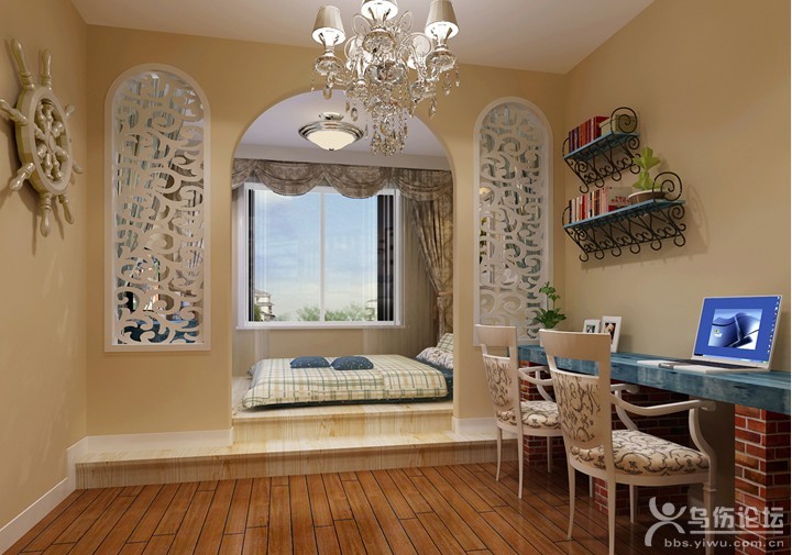 基本情況: 戶型結(jié)構(gòu):一居室45平米老房 要求:地中海風(fēng)格,但不要藍(lán)色太多,要求有寫字臺,餐臺