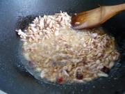 5  加入肉絲翻炒至顏色發(fā)白,加入料酒。