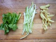 2  香菜切成段,蔥姜切成細(xì)絲。