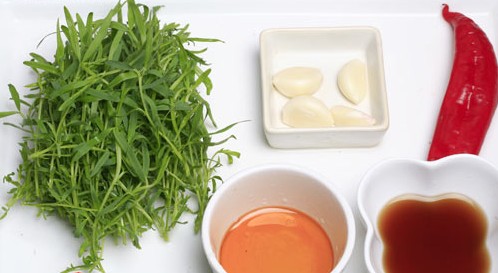 芝麻菜、紅油、大蒜、紅椒、紅醋、花椒油。