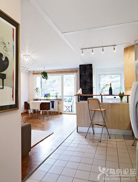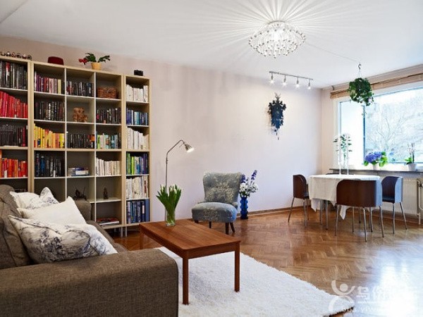 這是一套非常簡(jiǎn)潔卻又精致的小戶型公寓,房屋總共有66平方米。簡(jiǎn)潔的客廳除了沙發(fā)和茶幾以外只有一個(gè)書(shū)架,用餐區(qū)也就是一張桌子四把椅子。而開(kāi)放式的廚房給了這個(gè)空間最大的視覺(jué)感受,感覺(jué)將大部分空間都用在了公共區(qū)域了。非常不錯(cuò)的白色簡(jiǎn)潔公寓,Enjoy!