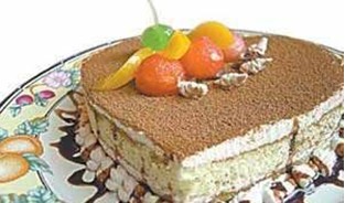 主料:8英寸清蛋糕底坯1只,鮮奶500克,黑車?yán)遄訚{500克,巧克力泡花,糖粉適量。