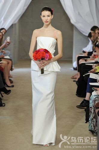 目的地婚禮將婚禮與蜜月完美結(jié)合,是一種非常流行時尚的婚禮方式。在目的地婚禮中,簡約派婚紗更為方便和適合。如這款抹胸直身裙婚紗,極簡約的剪裁勾勒出新娘曼妙曲線,秀出優(yōu)雅與清新的氣質(zhì)。