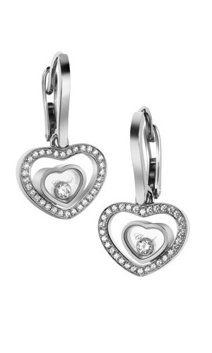 Chopard Happy Diamonds系列中的這款心形耳環(huán),以簡(jiǎn)潔流暢的線條用18K白金鑲嵌多顆鉆石,綴以心形及中央設(shè)置1顆活動(dòng)鉆石。