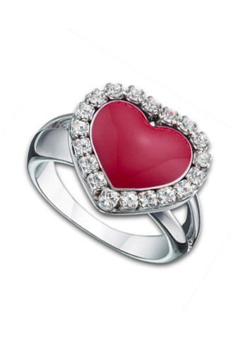施華洛世奇(Swarovski)另一款鍍白金色戒指以亮麗耀眼的粉紅色環(huán)氧樹脂心心,搭配精致迷人的透明密鑲水晶飾邊,以時(shí)尚摩登的手法詮釋心形設(shè)計(jì)。