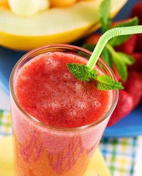 草莓90克,蜂蜜50毫升,檸檬汁90毫升,西瓜汁60毫升。將草莓絞取汁液和其他原料混合調(diào)勻,加些冰塊,即可飲服,每日2~3次?芍涡臒┍忝,苔黃口干等癥。