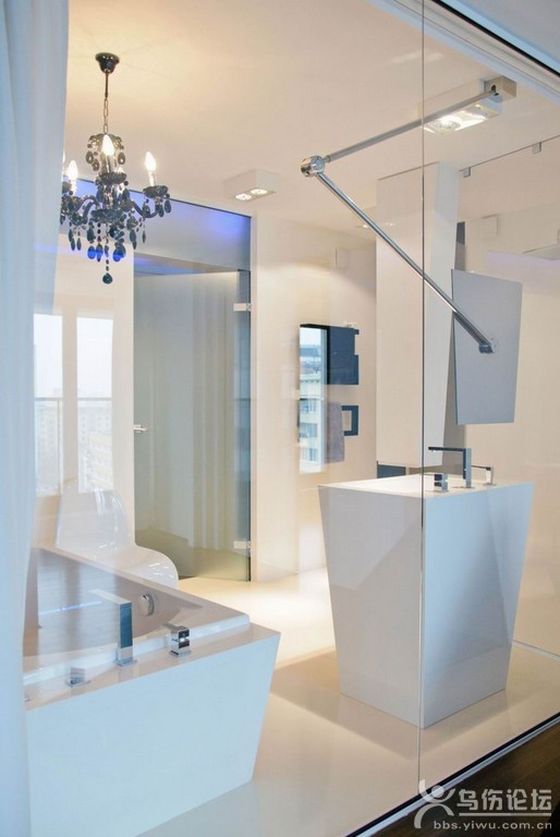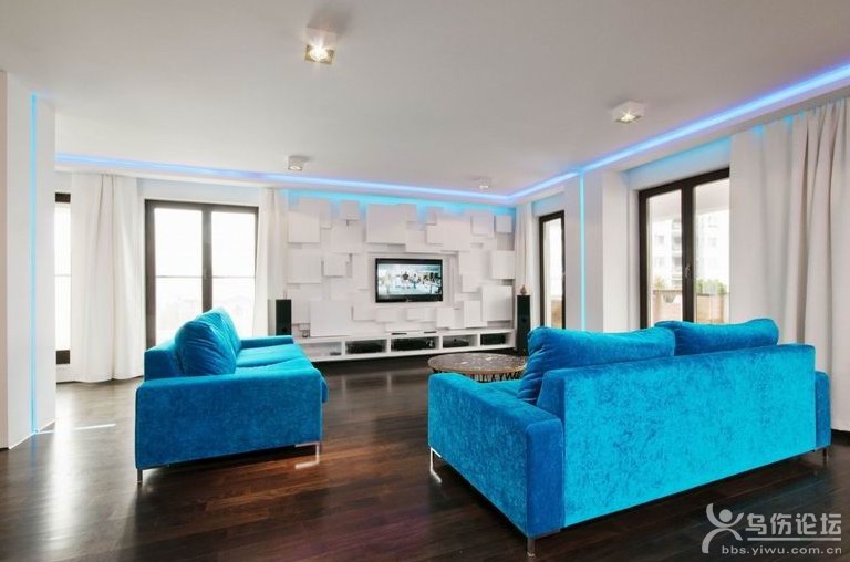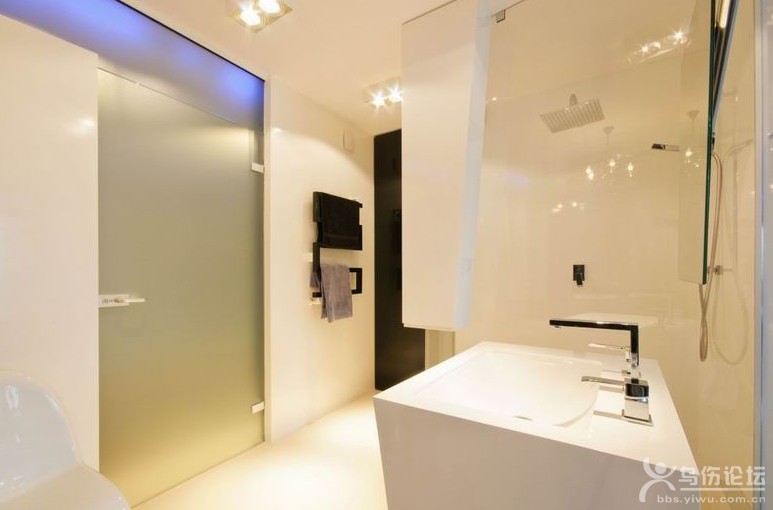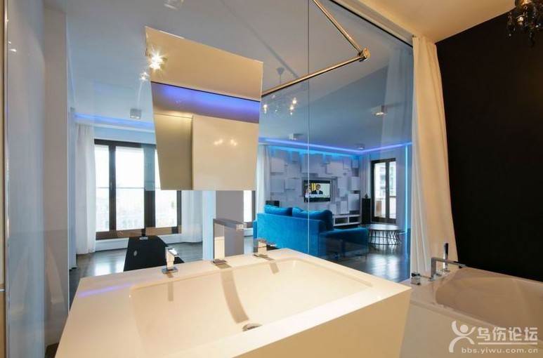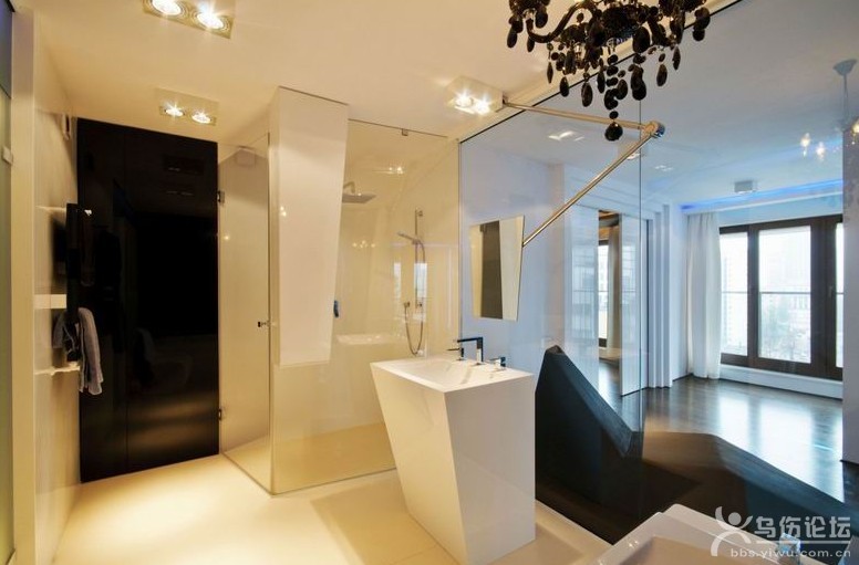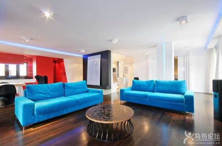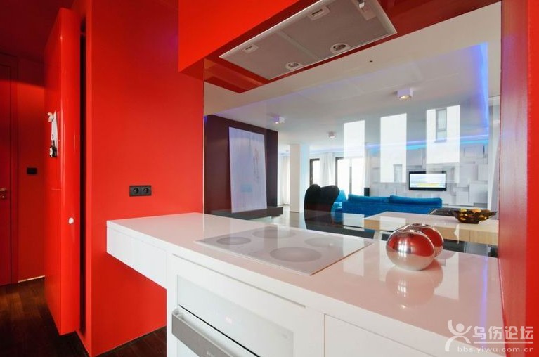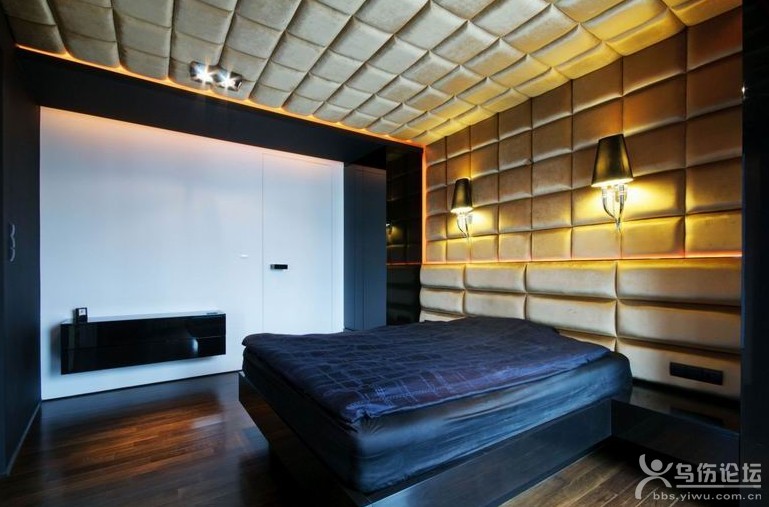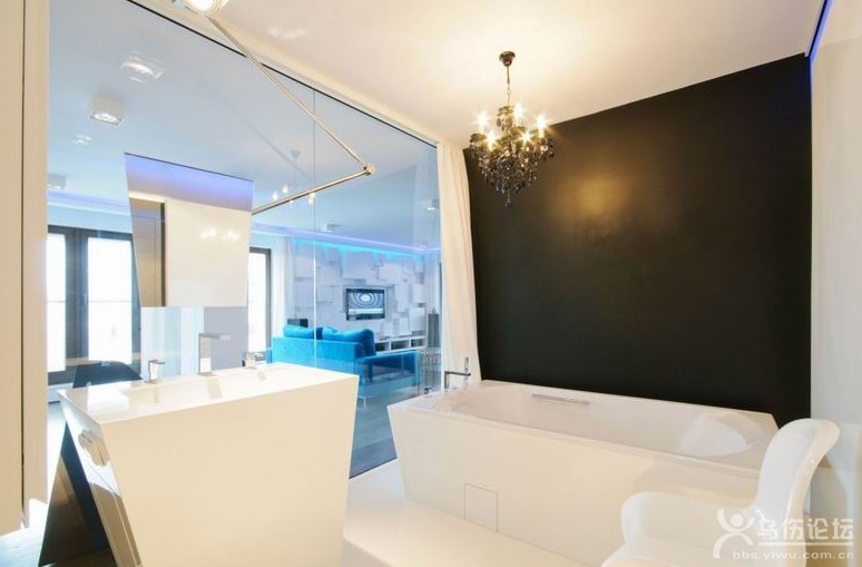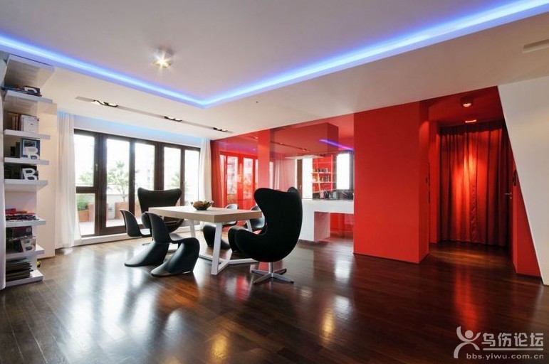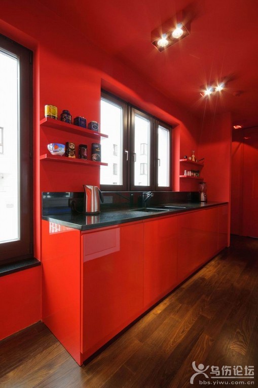 這家設(shè)計(jì)時(shí)尚的公寓靠近華沙市中心,由波蘭的HOLA Design擔(dān)當(dāng)室內(nèi)設(shè)計(jì)。設(shè)計(jì)師將內(nèi)部裝飾設(shè)定為深色調(diào),搭配深褐色的木地板和明亮的紅色廚房。大紅色的廚房甚至成為了住宅的核心。 在華沙市中心的公寓里,這里可謂得天獨(dú)厚,不僅交通方便,而且還能一覽波蘭最標(biāo)志性建筑——文化宮的美麗景色。在包含廚房的寬闊客廳里,設(shè)計(jì)師用火紅的顏色打造用餐區(qū)和廚房,是不是想讓用戶(hù)抱著滿(mǎn)腔熱情去打造每一頓美食呢?用餐區(qū)用玻璃墻跟廚房進(jìn)行隔離,輕盈地把充滿(mǎn)油煙的廚房與快樂(lè)的餐廳分開(kāi)。餐廳所使用的椅子是Stylhen出品的經(jīng)典設(shè)計(jì):Egg椅和Panton椅,足以彰顯屋主的品味。 客廳那夾在黑色跟藍(lán)色碰撞的Stylhen茶幾和沙發(fā)中的,是HOLA專(zhuān)門(mén)設(shè)計(jì)打造的3D電視墻。透過(guò)電視墻的幽幽藍(lán)色燈光,仿佛是一個(gè)夢(mèng)幻的圣地。浴室巧妙地放置在客廳的中央,由玻璃墻進(jìn)行阻隔,并面對(duì)著文化宮,在沐浴的同時(shí)享受著窗外的美景,讓洗浴變成一件賞心悅目之事。浴室旁的躺椅同樣是出自Stylhen的Diamond椅。看來(lái)設(shè)計(jì)師是Stylhen的忠實(shí)粉絲也說(shuō)不定。 臥室通過(guò)雙滑門(mén)設(shè)計(jì)跟生活區(qū)分開(kāi),里面有一個(gè)隱蔽的入口通向更衣室。由于臥室是放松休息的地方,所以設(shè)計(jì)師也讓其變得獨(dú)特。臥室在整個(gè)公寓里,采取了一種截然不同的風(fēng)格。這里充滿(mǎn)了各種金色輝煌的魅力元素,金色跟典雅的黑色碰撞出火花,并跟外面白色的空間產(chǎn)生鮮明的對(duì)比。推開(kāi)門(mén)進(jìn)去,感覺(jué)是走進(jìn)了一處奢華的皇宮寢室。 |