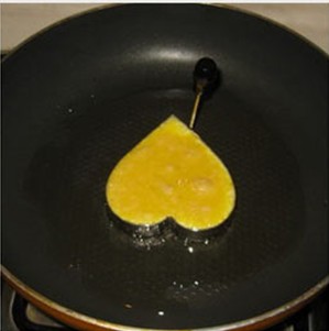 3、鍋內(nèi)入油,燒至5成熱,倒入雞蛋液,煎至兩面金黃即可。