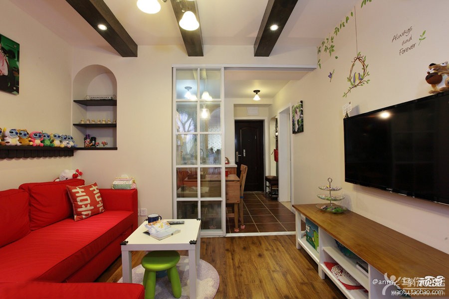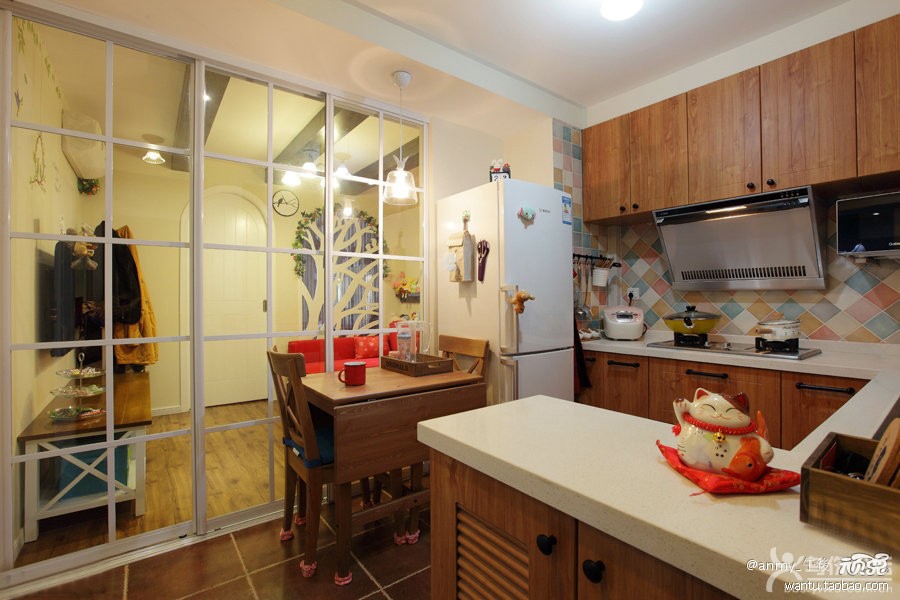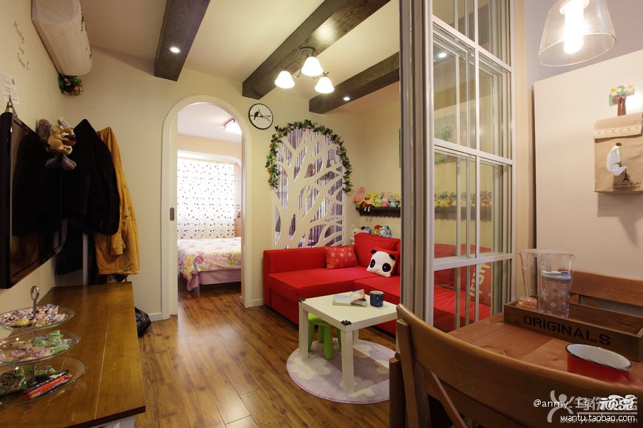 這是一個老戶型 由客廳走向臥室 是一個直筒式的 即使是小房子 也得有個明顯的區(qū)域劃分 于是 客廳就就將就這個轉(zhuǎn)角沙發(fā)的空間 留了這么多 正好放下這個沙發(fā) 選擇紅色的 會讓這個小婚房看起來更溫馨 更浪漫~~客廳與臥室之間有個小隔斷 那是為了方便采光 不然 這個客廳 真的是不見光了哦~同時這個隔斷也是裝飾 做了很多修飾 真的很漂亮哦~ 雖然 廚房餐廳玄關(guān)擠在一起 顯得很緊湊 但是 空間的尺度把握得很到位 不會貼得太緊 沒有一寸的活動空間呢 餐廳餐桌展開的話 可以坐很7 8個人呢~~大家聚在廚房吃飯 方便也開心 進(jìn)門的全景效果 集合了玄關(guān) 餐廳 廚房為一體的感覺 餐廳這邊的吊燈慶幸拍到了 很喜歡這個北歐風(fēng)格的清光玻璃吊燈 家里空間小 還是盡量用尺寸小的燈較合適呢! |