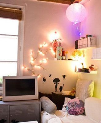 房間雖小,卻感覺特別溫馨,墻壁上的燈,閃著柔和的光芒,下面還有可愛的墻貼。