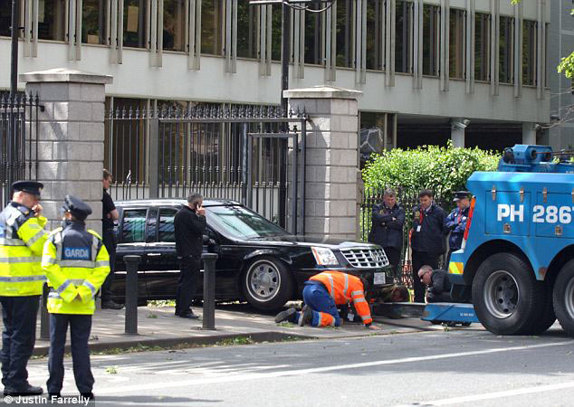 奧巴馬訪問愛爾蘭行程期間,安保車隊(duì)出現(xiàn)一件天大的“糗事”。奧巴馬專屬的、外號(hào)為“野獸”的凱迪拉克DTS當(dāng)場(chǎng)拋錨。
