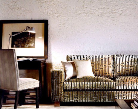 如果你想尋找一種不太張揚的顏色,又不滿足黑與白的單調(diào),那么大地色就是不錯的選擇。包含淺土黃色直至深棕色的大地色譜,在搭配上幾乎不存在任何難度,大地色彩作為一種基本色,適用性高,且不易過時。但想要潮流與適用兼?zhèn),那就要在其色調(diào)基礎(chǔ)上做些布質(zhì)的變化來混搭運用咯! 隨著冬季的到來,許多朋友紛紛用上了穩(wěn)重、沉靜的大地色系列。大地譜色配以寫實印象派圖案,更是冬天不可多得的暖色氣場,大篇幅地鋪滿客廳,懷舊抑或找尋內(nèi)心深處對自然的情愫,讓繁花開滿家的夢想地。 2011沙發(fā)流行趨勢之3--抽象印花派