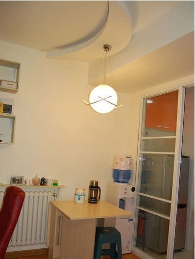 木工活————餐邊柜和餐桌 家里的廚房面積很小,只有4平米,操作臺(tái)的面積受限制了,如果在把電飯煲,電磁爐等占用操作臺(tái)的話,備菜就很不舒服了哦。所以我利用廚房門外面的拐角處做了一個(gè)餐邊柜,相應(yīng)的上方做了一個(gè)吊柜,這樣和廚房保持統(tǒng)一的風(fēng)格,功能也齊全了很多,把櫥柜延展到了外面,不再擔(dān)心空間不足了,廚房的操作臺(tái)現(xiàn)在足夠用了。前幾天來了好幾個(gè)朋友,我們準(zhǔn)備了一桌菜,實(shí)際練兵了哦。朋友說我家空間利用很好,很喜歡這個(gè)餐邊柜。 木工師傅做好柜體