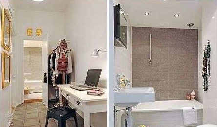 進(jìn)門的過道處也被充分的利用了,衛(wèi)生間加上灰色系的瓷磚更顯大氣 |