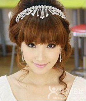這款盤發(fā)將微卷的劉海在額頭垂墜,高貴典雅。