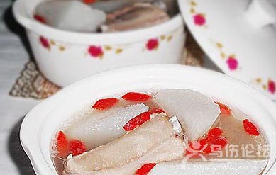 | 冬季來(lái)臨,眾多女性都準(zhǔn)備好了養(yǎng)生的食譜,同樣在生活中及工作中倍感壓力的男性也應(yīng)該注意滋補(bǔ)! 原料:鮮山藥200克,干蓮子肉20粒,枸杞子20克,銀耳6朵,冰糖少量。 做法:鮮山藥去皮,切段,與其余配料共同放入無(wú)油的瓦罐中,加清水浸泡,用小火慢燉2小時(shí),湯液黏稠即起鍋。 這道甜品以山藥、蓮子益氣健脾,以枸杞子、銀耳滋陰補(bǔ)腎,針對(duì)陰陽(yáng)兩虛的癥狀尤為適合。 性生活過(guò)于頻繁,耗傷陰精,中醫(yī)稱之為“竭”,常見(jiàn)于一些性生活頻率較高的新婚夫妻。 海蛤墨魚湯 原料 海蛤30克,墨魚6條,熟地10克,黨參2只,生姜20克。 做法 將海蛤、墨魚洗凈,墨魚切段,生姜拍一拍,與其余的配料一同放入無(wú)油的瓦罐中,加清水浸沒(méi)原料,小火慢燉2小時(shí),起鍋時(shí)加入3克食鹽。切忌加鹽過(guò)多,因?yàn)檫^(guò)咸會(huì)傷腎。 這道湯羹以海蛤、墨魚等咸寒之物補(bǔ)益腎陰,配合生姜除寒,黨參益氣生津。 房事中呼吸不暢,神昏意亂,中醫(yī)稱之為“煩”.這種情況往往多見(jiàn)于工作壓力大、長(zhǎng)期情緒差,導(dǎo)致性生活次數(shù)少、質(zhì)量不高的上班族。 木瓜海帶烏雞湯 原料:木瓜半個(gè),海帶50克,烏雞半只,黨參2只。 做法:木瓜除子去皮,海帶洗凈切塊,烏雞剁成小塊,放入鍋中加水文火慢燉,2小時(shí)后出鍋,加食鹽4克。 這道湯以木瓜、海帶理氣散結(jié),以烏雞滋補(bǔ)肝腎,黨參補(bǔ)氣以助木瓜理氣之功。 西洋參瘦肉湯 組成:西洋參24克,瘦豬肉500克。 制法:將西洋參洗凈,用溫水泡軟,切片;再將瘦豬肉洗凈,與西洋參片一齊放入鍋內(nèi),加入泡過(guò)西洋參的水及適量的清水,武火煮沸后文火煲2小時(shí),調(diào)味,飲湯食肉。 功效:補(bǔ)氣健脾,強(qiáng)身開胃。 主治:氣虛不任溫躁,本方補(bǔ)而不躁,清補(bǔ)益氣。對(duì)熱病后期,正氣不足之神疲乏力,飲食減少尤其適食;或小兒脾虛之不思飲食,形疲虛汗;或產(chǎn)后氣虛津虧之虛勞煩渴,胃納欠佳。 參芪乳鴿湯 組成:黨參60克,黃芪30克,乳鴿2只。 制法:乳鴿剖凈,去內(nèi)臟,抹干水分,切塊;黨參、黃芪洗凈,與鴿肉一齊放入鍋肉,加清水適量,武火煮沸后,文火煲2小時(shí),調(diào)味,飲湯吃肉。 功效:補(bǔ)氣健脾。 主治:病后體弱,或久病體衰,脾胃虛弱,癥見(jiàn)倦怠乏力,面黃食少,神疲形瘦;或產(chǎn)后欠補(bǔ),氣血不足;或消渴飲水不知足。 人參燉雞 組成:雞肉100克,紅參10克(如邊條參用12克;吉林參用8克;高麗參用6克)。 制法:雞去毛剖凈,取雞腿肉或雞胸肉,去皮、骨;人參切片與雞肉一起放進(jìn)燉盅內(nèi),加清水適量,燉盅加蓋,文火隔水燉3小時(shí),調(diào)味,飲湯食肉。 功效:大補(bǔ)元?dú),固脫攝血。 主治:元?dú)獯筇,身體虛嬴;或心氣虛弱,癥見(jiàn)動(dòng)則心悸,汗出,氣喘;或出血不止,血脫及氣。 現(xiàn)代用于出血性休克、心力衰竭;亦可作一般體虛調(diào)補(bǔ)之湯品。 |