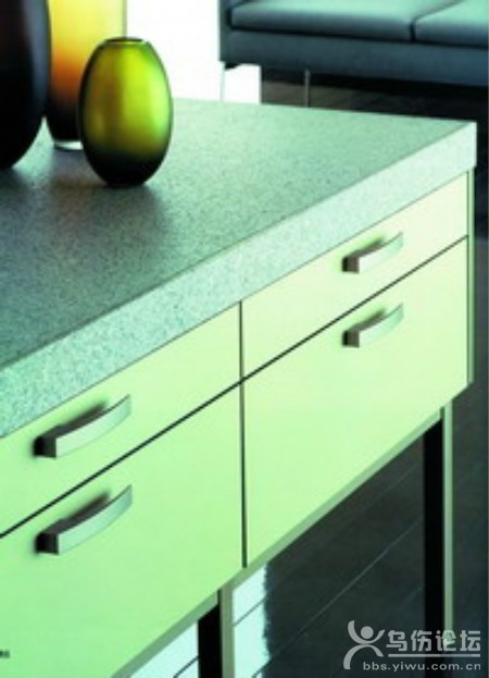 廚房臺(tái)面PK教你選購,看看5種廚房臺(tái)面材料。適合做廚房的臺(tái)面的材料,有防火板、人造石、天然大理石,花崗巖、不銹鋼等。其中以人造石臺(tái)面的性能價(jià)格比最好。 1、人造石臺(tái)面:分進(jìn)口及國產(chǎn),由石粉加入人造纖維經(jīng)高溫高壓制成。它的主要特點(diǎn)就是絢麗多彩,表面無毛細(xì)孔,具有極強(qiáng)的耐污、耐酸、耐腐蝕、耐磨損性能,易清潔。兼具有天然大理石的優(yōu)雅和花崗巖的堅(jiān)硬,具有木材般細(xì)膩和溫暖感,具有陶瓷般的光澤,極具可塑性,接縫緊密,甚至無縫,線條渾圓流暢,可以做出任何造型。進(jìn)口人造石臺(tái)面中杜邦可麗耐、色麗石是臺(tái)面中的頂級(jí)產(chǎn)品,但價(jià)格每平方米比國產(chǎn)的貴一到兩千元;國產(chǎn)人造石臺(tái)面,蒙特利、耐恩石的質(zhì)量不錯(cuò)。國產(chǎn)人造石臺(tái)面每平方米在1000元左右。→相關(guān)閱讀: 櫥柜好壞關(guān)鍵要看人造石臺(tái)面 2、防火板臺(tái)面:基材為密度板,飾面為防火板。厚度:4mm。色彩鮮艷多樣,防火,防潮,耐油污,耐酸堿,耐高溫,易清理。內(nèi)部材質(zhì)的好壞影響著防火板臺(tái)面的使用壽命。 3、不銹鋼臺(tái)面:堅(jiān)固耐用,也較易清理。但不銹鋼臺(tái)面單一色澤令人感覺不可親、不溫暖,缺乏家庭的溫馨感,目前在強(qiáng)調(diào)個(gè)性和主張回歸自然的家居流行風(fēng)氣下不再受人青睞。 4、天然大理石:具有天然的紋路,比較美觀,但天然大理石有孔隙,易于存油垢,且天然大理石脆性大,不能制作超過1米的臺(tái)面,以天然大理石制作的臺(tái)面會(huì)有接縫,這些接縫也容易積藏污垢,影響衛(wèi)生。目前防火板臺(tái)面正以其適中的價(jià)格受到人們的廣泛歡迎,人造石臺(tái)面則以其優(yōu)良的品質(zhì)日益受到人們的青睞。天然大理石用作臺(tái)面的較少。 5、花崗巖,與人造相比。美觀不如。天然石材短,一般在2.5米左右,做臺(tái)面需要透明玻璃膠拼接;天然石材邊角處沒有人造石易處理加工。價(jià)格。花崗巖價(jià)格不如人造石。常用的品牌有“豐鎮(zhèn)黑”“中國黑”等。 |