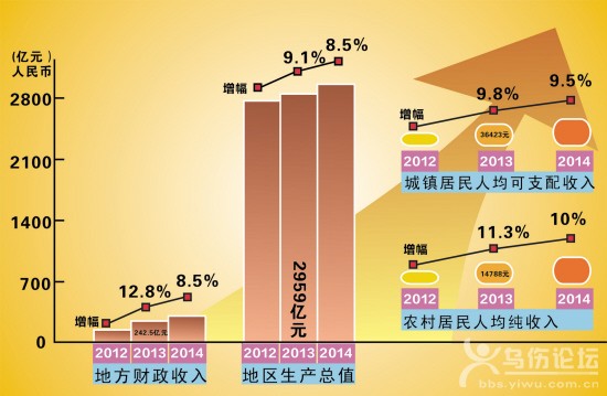2013:GDP增幅達9.1% 去年,全市實現(xiàn)生產(chǎn)總值2959億元,增長9.1%;地方財政收入242.5億元,增長12.8%;城鎮(zhèn)居民人均可支配收入36423元,增長9.8%;農(nóng)村居民人均純收入14788元,增長11.3%。 2014:GDP增幅保8.5% 今年是全面深化改革的開局之年,我市將以“五水共治”為突破口,全面實施“八項行動”。 全市經(jīng)濟社會發(fā)展的主要預(yù)期目標是:地區(qū)生產(chǎn)總值增長8.5%,地方財政收入增長8.5%,城鎮(zhèn)居民人均可支配收入增長9.5%,農(nóng)村居民人均純收入增長10%,節(jié)能減排指標完成省下達的目標任務(wù)。 【熱點解析】 關(guān)鍵詞:改革創(chuàng)新 加速浙中崛起,貴在“崛起”,重在“加速”,實施改革創(chuàng)新則是“加速”的主引擎,《報告》明確了改革創(chuàng)新的幾個主攻方向。 『主攻方向』 “四破”專項整治 開展“四破”專項整治活動,建立健全“四破”體制機制,推進資源要素集約節(jié)約利用和公共資源集中管理、市場化運作。建立以企業(yè)畝產(chǎn)效益為核心的綜合評價體系,出臺閑置低效用地再開發(fā)利用政策,完善資源有償使用機制,推進環(huán)境污染第三方治理。 深化義烏試點改革 落實義烏國際貿(mào)易綜合改革試點第二個三年實施計劃,對接上海自由貿(mào)易區(qū),深化國土、金融等專項改革,完善國際貿(mào)易管理體系,促進貿(mào)易便利化。 實施創(chuàng)新驅(qū)動戰(zhàn)略 發(fā)揮企業(yè)創(chuàng)新主體作用,引導(dǎo)民營資本與人才智力項目對接,促進創(chuàng)新資源向企業(yè)集聚,爭創(chuàng)國家級企業(yè)技術(shù)中心,新增高新技術(shù)企業(yè)100家。 【熱點解析】 關(guān)鍵詞:固本強基 引導(dǎo)群眾參與社會管理,培育公益慈善類、社區(qū)服務(wù)類組織,壯大社工及志愿者隊伍,實現(xiàn)政府治理和社會自我調(diào)節(jié)、居民自治良性互動,努力把矛盾化解在基層、問題解決在當?shù)、隱患消除在萌芽狀態(tài)。 『主攻方向』 暢通市民問政渠道 暢通市民問政、市長信箱、行風熱線、來信來訪等渠道,完善與群眾利益密切相關(guān)的重大事項社會公示和聽證制度,做好重大決策社會穩(wěn)定風險評估和社會矛盾糾紛預(yù)防化解工作。深化8890便民服務(wù)平臺建設(shè),拓展服務(wù)內(nèi)容,完善辦理機制,努力實現(xiàn)市域內(nèi)一張網(wǎng)。 強化食品藥品監(jiān)管 建立生產(chǎn)安全隱患排查和預(yù)防控制長效機制,深化企業(yè)安全生產(chǎn)標準化建設(shè),加強消防安全管理,有效防范較大事故、堅決遏制重特大事故發(fā)生,保持生產(chǎn)安全形勢總體穩(wěn)定。加強社會治安綜合治理,完善治安防控體系,防范和打擊各類違法犯罪活動。 【熱點解析】 關(guān)鍵詞:先進文化 去年,我市完善公共文化基礎(chǔ)設(shè)施和服務(wù)體系,不僅中國婺劇院、市文化藝術(shù)中心對外開放,還建成農(nóng)村文化禮堂218家。對于如何打造“先進文化”,《報告》也指明了途徑。 『主攻方向』 推進文化強市建設(shè) 開展以愛國、敬業(yè)、誠信、友善為主要內(nèi)容的公民道德建設(shè),深化文化惠民工程,加快建設(shè)農(nóng)村文化禮堂,完善城鄉(xiāng)文化設(shè)施網(wǎng)絡(luò),大力發(fā)展文化產(chǎn)業(yè)。積極創(chuàng)建義務(wù)教育發(fā)展基本均衡縣(市、區(qū)),推進教育現(xiàn)代化。推進衛(wèi)生強市建設(shè),統(tǒng)籌推進公立醫(yī)院改革,鼓勵社會資本興辦高端醫(yī)療機構(gòu),支持非營利性醫(yī)療機構(gòu)。 實施積極就業(yè)政策 努力做好高校畢業(yè)生、城鎮(zhèn)困難人員等重點群體就業(yè)工作。扎實開展社保擴面征繳,健全城鄉(xiāng)居民、城鎮(zhèn)職工養(yǎng)老保障機制,加快城鄉(xiāng)醫(yī)療保障制度整合步伐,推進醫(yī)!耙豢ㄍā苯ㄔO(shè)。全面推廣金東新型農(nóng)村居家養(yǎng)老模式,探索建立城市社區(qū)社會化養(yǎng)老模式。 【新聞鏈接】 今年十大民生實事