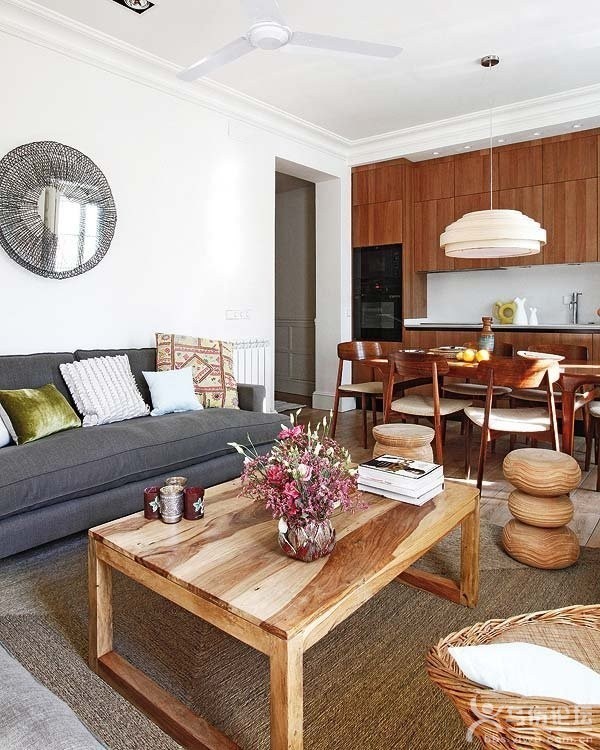| 這間公寓既寬敞又美觀,看起來不僅僅65平。因為業(yè)主要求一個獨特的大型開放式空間來容納客廳、餐廳和廚房,顯然已經(jīng)迷戀上了這種敞亮感,想要保持住原始構(gòu)造。此外,采用20厘米長的木地板鋪貼,也從視覺上有效地拉伸了空間。至于照明,則是另外一個關(guān)鍵因素。除了餐廳吊燈和兒童房照明,整個室內(nèi)都只見嵌入式筒燈,微弱或強光,可以根據(jù)需要提供一個通用或局部的調(diào)節(jié)。室內(nèi)隨處可見清新的小盆栽,展現(xiàn)出了最真實的自然感覺。 |
