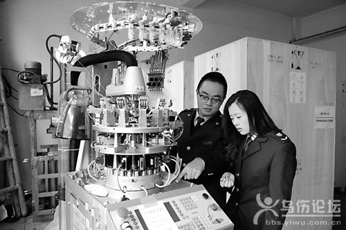 : 2月17日,浙江義烏檢驗檢疫局工作人員冒雪前往工廠,對一批從意大利進口的織襪機實施現(xiàn)場檢驗。1月1日至2月18日,義烏局共受理入境織襪機報檢6批,共計136臺、貨值218.48萬美元。