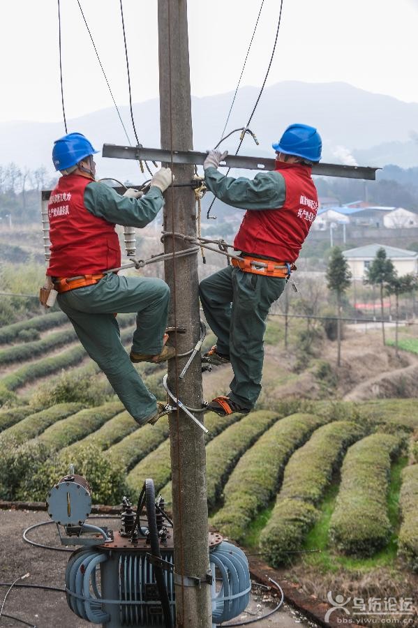 黨員服務隊隊員為茶葉生產基地更換老舊的線路設備
