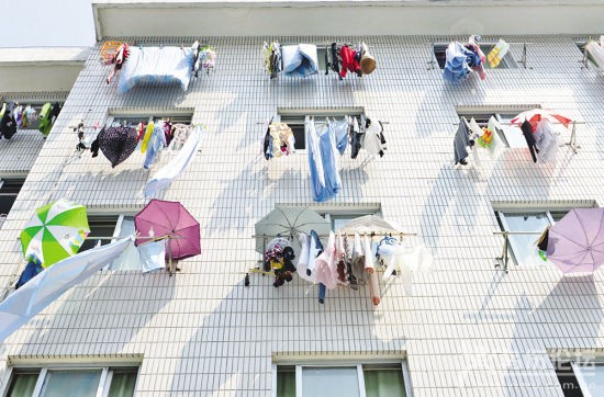 義烏工商學(xué)院女子宿舍別樣的晾衣服