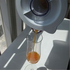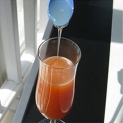 3、在將果汁倒入杯子里,然后加入蜂蜜攪拌均勻即可。