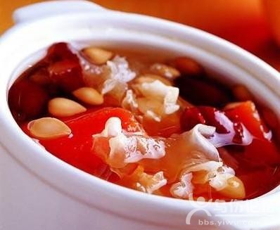 星期一:核桃松仁粟米羹 核桃和松仁都是女性經(jīng)典的滋補食品,它們富含維生素E和鋅,有利于滋潤皮膚、延緩皮膚衰老。此外,它們中蛋白質(zhì)、礦物質(zhì)、B族維生素的含量也十分豐富,是美容、美發(fā)的佳品。核桃和松仁都是亞麻酸的上好來源,這正是最近風行的健胸保健成分,有刺激雌性激素合成的功能。玉米本身富含維生素E,也是專家推崇的美膚食品。 星期二:枸杞酒釀蛋 鵪鶉蛋中含有豐富的蛋白質(zhì)、B族維生素和維生素A、E等,與酒釀一起煮,它還會產(chǎn)生有利于女性皮膚的酶類與活性物質(zhì)。枸杞子則是滋補肝腎的佳品,也是美容藥膳中常用的原料之一,維生素A的含量也特別豐富。這些食物加在一起后,更能促進營養(yǎng)成分的吸收,女性食用后的臉色更加滋潤動人。 星期三:木瓜紅棗蓮子蜜 木瓜是盡人皆知的美膚養(yǎng)顏、滋補催乳,對消化不良或便秘的人也具有很好的食療作用。美容食療時,木瓜可配牛奶食用,也可以用來制作菜肴或粥食。紅棗是調(diào)節(jié)內(nèi)分泌、補血養(yǎng)顏的傳統(tǒng)食品,如果紅棗配上蓮子食用,又增加了調(diào)經(jīng)益氣、滋補身體的作用。 星期四:薏仁牛奶粥 薏仁加上牛奶,可以讓肌膚美白效果更加乘,牛奶可滋潤肌膚,薏仁可幫助排水腫,可說是一舉數(shù)得! 星期五:紅糖糕 紅糖在日本被視為美膚圣品,因為它含氨基酸和微量元素可以幫助肌膚排毒,加速痘痘和粉刺的代謝速度和美白等功效。 星期六:紅豆湯 紅豆自古變是養(yǎng)生圣品,不但可以排水腫,還可以補血行氣,讓你即使不打腮紅也可擁有紅潤的蘋果臉喔。 星期天: 豬腳含有豐富膠質(zhì),據(jù)研究定期持續(xù)攝取5000mg的膠原蛋白質(zhì)可增加肌膚的彈性,減少細紋,增加肌膚的彈性,讓肌膚看起來更年輕。 |