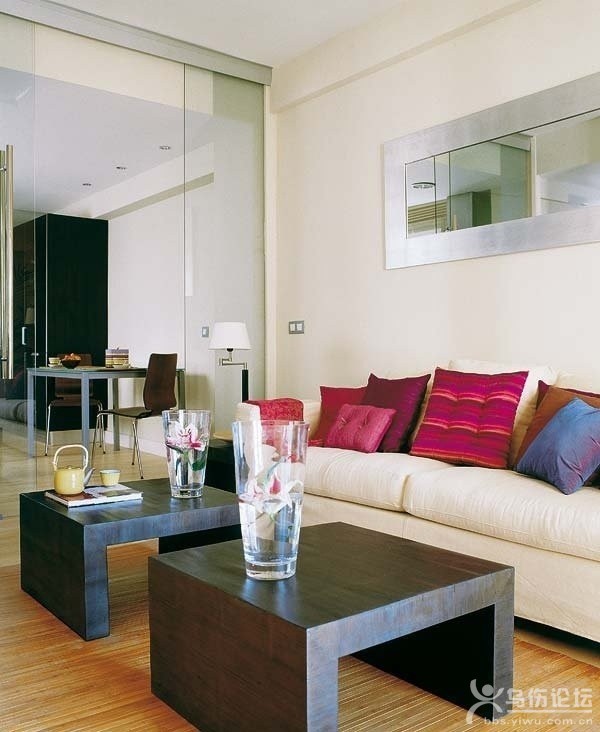 | 本案在客廳、餐廳和廚房分配的整體格局上首先進(jìn)行了有效的明確,巧妙運(yùn)用墻面的凹凸劃分層次,充分利用空間及功能布置。明顯的現(xiàn)代風(fēng)格,加上簡(jiǎn)約的設(shè)計(jì),構(gòu)成了這個(gè)溫馨的小家。整體以白色為主,黑色為輔,加入一些紅色家紡、綠色植物等裝飾,展現(xiàn)出一個(gè)小戶型現(xiàn)代風(fēng)格的黑白經(jīng)典。良好的環(huán)境感受很重要,客廳邊幾處,盤子內(nèi)均勻地撒滿玫瑰花瓣,在空間中綻放著一種不同尋常的美感。 |