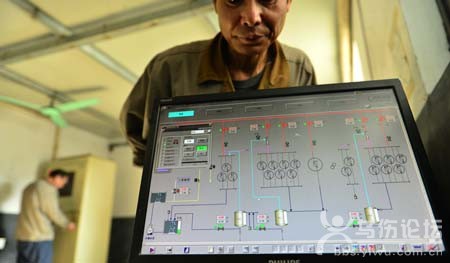 佛堂鎮(zhèn)魯雅造紙廠內(nèi),工程技術(shù)人員正在操控國(guó)內(nèi)處理污水先進(jìn)技術(shù)系統(tǒng)“熱泵自控系統(tǒng)”。其工作原理是通過對(duì)生產(chǎn)過程的高、中、低溫區(qū)蒸汽的逐級(jí)循環(huán)利用,加強(qiáng)生產(chǎn)過程中冷凝水的回收,這是通過技術(shù)改造后取得的新成果。