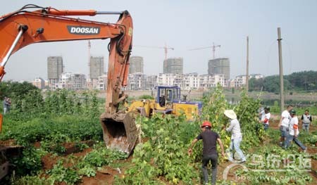 6月5日,北苑街道蓮塘水庫周邊機(jī)聲隆隆,街道、住建、執(zhí)法等聯(lián)合開展清表作業(yè),為蓮塘公園景觀工程全面開工建設(shè)鋪平道路。蓮塘公園是今年我市重點(diǎn)工程,相關(guān)責(zé)任單位積極落實(shí)籌備,街道、村全力支持配合,一個(gè)月就完成涉及的1200多穴墳?zāi)拱徇w工作,確保了項(xiàng)目順利推進(jìn)。作為城區(qū)六大主題公園之一,蓮塘公園景觀工程總造價(jià)10450萬元,總面積317畝,圍繞蓮花主題,該公園以高標(biāo)準(zhǔn)規(guī)劃設(shè)計(jì),打造全新品位、別具寓意的景觀,工程將于2015年3月全部完工。圖為清表時(shí),工作人員幫助村民搶收農(nóng)作物。 |