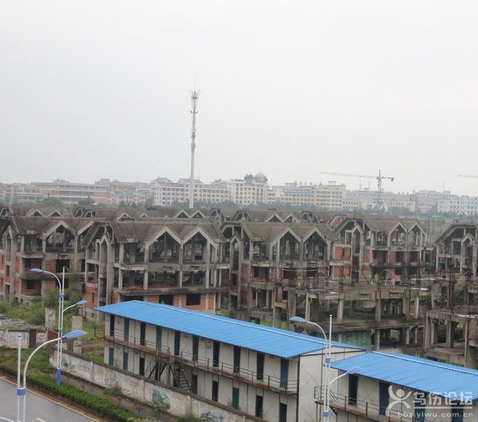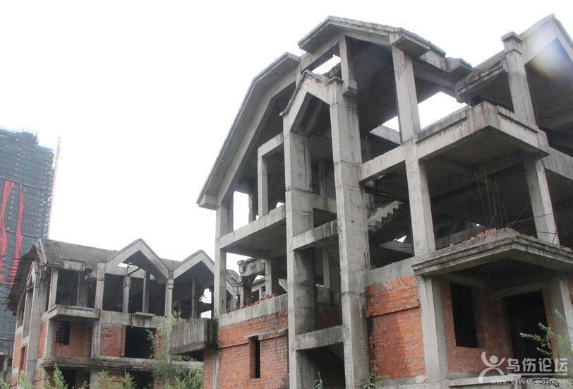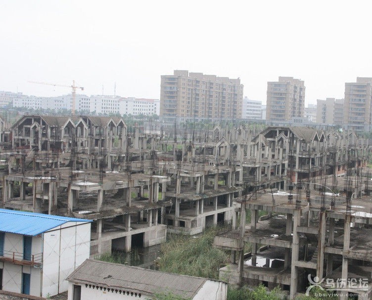 2014年7月2日,浙江省義烏市義亭鎮(zhèn)安居工程暨金城-香格里拉莊園”項目,2009年開工近半年就停工,在當(dāng)?shù)卣槿胂,借給開發(fā)商3300萬,4棟11層的安居工程完工。但已建成三分之二的50余棟排屋一直荒廢,五六年沒有復(fù)工,如今已經(jīng)變成一片鬼屋。