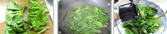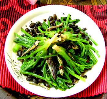 今天看到菜場有久違的菠菜了,馬上買來嘗鮮,菠菜富含葉酸,其中大量的鐵和微量元素,不僅補血,對頭發(fā)有著諸多好處,再搭配一些煮好的黑豆,自己烤的可以補鈣的海苔小魚干,淋上醬料,一道補腎補血的健康涼拌菜就新鮮出爐啦。 原料: 菠菜、黑豆、芝麻。 做法: 1、將菠菜洗凈,切成段備用;(菠菜的根非常營養(yǎng),大家千萬別扔掉哦) 2、水燒開后,放入適量鹽,菠菜放入汆燙數(shù)秒,顏色變綠后撈起,沖冷水至涼; 3、分別將生抽,麻油,淋在菠菜上,在拌入一點老干媽,將小魚干加進去; 4、煮熟的黑豆放在盤底,伴好的菠菜魚干倒入盤子,上面撒上炒熟的黑芝麻即可。