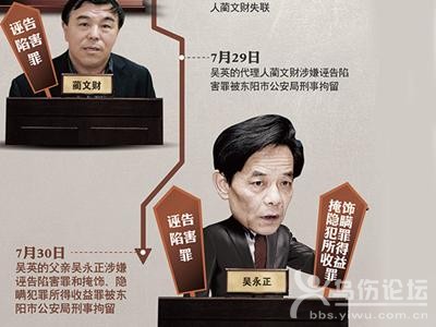 制圖 寥寥數(shù)語(yǔ)的一紙“情況說(shuō)明”,在一周的時(shí)間里,竟然引起軒然大波。 入獄服刑屆滿兩年的浙江東陽(yáng)“億萬(wàn)富姐”吳英在8月1日與律師會(huì)見(jiàn)過(guò)程中泣不成聲。她沒(méi)有想到,她寫下的涉及東陽(yáng)市副市長(zhǎng)陳軍收錢的這張紙,將她的父親吳永正和代理人藺文財(cái)“送進(jìn)”了看守所。 吳英多次哭泣 7月30日下午,東陽(yáng)市委市政府新聞辦公室的官方微博發(fā)布消息稱,吳永正以及吳英案代理人藺文財(cái)被東陽(yáng)市公安局刑拘,二人均涉誣告陷害罪之外,吳永正還涉嫌“掩飾、隱瞞犯罪所得收益罪”。 8月1日上午,吳英案代理律師呂海波在浙江省女子監(jiān)獄會(huì)見(jiàn)吳英。據(jù)轉(zhuǎn)述,吳英對(duì)父親及藺文財(cái)被拘一事非常驚訝和氣憤,會(huì)見(jiàn)中曾多次伏案哭泣。 吳英稱,她確曾給藺寫過(guò)說(shuō)明,指稱曾在看守所舉報(bào)過(guò)原東陽(yáng)市財(cái)政局副局長(zhǎng)陳軍,理由是陳向其要過(guò)十多萬(wàn)元,她認(rèn)為陳不適合擔(dān)任其資產(chǎn)處置小組負(fù)責(zé)人。 吳英對(duì)一直為此案奔走的年邁父親和代理人被拘表示“內(nèi)疚”。呂海波特別解釋,吳英的“內(nèi)疚”在于案件拖累了幫她的人,而并非自己反映的事實(shí)失實(shí)。 呂海波以案件敏感為由,拒絕透露其他與吳英的談話內(nèi)容。他僅表示,主要是核實(shí)警方調(diào)查吳英的細(xì)節(jié),以及吳英反映陳軍索賄一事的細(xì)節(jié)。 據(jù)記者了解,呂海波在8月1日和4日對(duì)吳英進(jìn)行了兩次會(huì)見(jiàn)!耙虬盖楹軓(fù)雜,我要與另一位律師朱建偉商量后再安排下一步工作!眳握f(shuō)。 本報(bào)記者從知情人處獲悉,7月22日,藺文財(cái)在會(huì)見(jiàn)吳英時(shí),吳除寫下上述書面說(shuō)明之外,并講述“十多萬(wàn)元錢”是送到陳的家中。 據(jù)媒體公開(kāi)報(bào)道,會(huì)見(jiàn)結(jié)束后,藺文財(cái)23日即攜帶吳英的書面說(shuō)明,前往東陽(yáng)市委市政府,申請(qǐng)陳軍回避。 東陽(yáng)市官方7月26日通過(guò)媒體表示,他們針對(duì)藺文財(cái)?shù)姆从澈兔襟w的報(bào)道立即展開(kāi)調(diào)查,確定陳軍在吳英案中未涉及受賄問(wèn)題。另外,陳軍在7月26日就吳英、藺文財(cái)誣告一事向公安部門報(bào)案,相關(guān)部門已介入調(diào)查。 東陽(yáng)市官方“確定陳軍未受賄”的說(shuō)法引起嘩然。多家主流媒體發(fā)表評(píng)論質(zhì)疑,如“東陽(yáng)市自查副市長(zhǎng)結(jié)論能服眾嗎”、“副市長(zhǎng)涉賄應(yīng)由誰(shuí)宣布”等。 7月31日,浙江律師吳有水給東陽(yáng)市政府發(fā)函,要求公開(kāi)東陽(yáng)市政府關(guān)于陳軍是否涉及受賄問(wèn)題的調(diào)查報(bào)告。8月2日,北京澤永律師事務(wù)所王永杰也要求東陽(yáng)市對(duì)此調(diào)查內(nèi)容進(jìn)行公開(kāi)。他們疑問(wèn),在不到一周的時(shí)間內(nèi),東陽(yáng)官方是如何調(diào)查清楚這起復(fù)雜且相對(duì)隱秘的受賄事件的? 東陽(yáng)警方辦案 東陽(yáng)市公安機(jī)關(guān)快速介入?yún)怯⒌热松嫦诱_告陷害案,也令外界關(guān)注。 梳理案件時(shí)間節(jié)點(diǎn)可知,東陽(yáng)官方通報(bào)陳軍在7月26日?qǐng)?bào)案,7月29日晚藺文財(cái)在太原機(jī)場(chǎng)登機(jī)時(shí)被控制,同一時(shí)間吳永正在東陽(yáng)被控制。 “這種辦案速度令人驚訝!蓖跤澜苷f(shuō),從法理上講,東陽(yáng)市公安局應(yīng)當(dāng)回避此案,由上級(jí)公安機(jī)關(guān)指定異地公安機(jī)關(guān)辦理。 “陳軍是副市長(zhǎng),東陽(yáng)市公安局與陳軍存在行政隸屬關(guān)系,可能會(huì)影響案件的公正處理!蓖跽f(shuō),他已就此提交了管轄權(quán)異議書。 據(jù)悉,陳軍報(bào)案后,東陽(yáng)市公安局曾派警察到監(jiān)獄中核實(shí)情況。據(jù)轉(zhuǎn)述,辦案警察主要核實(shí)以下問(wèn)題:一是吳英能否指認(rèn)出多張相片中的陳軍,二是陳軍當(dāng)時(shí)的身份是財(cái)政局局長(zhǎng),而不是吳英所寫的副局長(zhǎng),三是吳英所稱陳軍要錢的細(xì)節(jié)。 據(jù)一位知情人士透露,吳英未能從一堆相片中指認(rèn)出陳軍,并稱陳軍是“原東陽(yáng)市財(cái)政局副局長(zhǎng)”可能有誤,至于送“十多萬(wàn)錢”也沒(méi)有證據(jù)。 記者6日就此多次致電東陽(yáng)市公安局局長(zhǎng)陳鋒求證,但他短信表示正在開(kāi)會(huì)未接電話,至本報(bào)截稿時(shí)也未回復(fù)記者的求證短信。 東陽(yáng)市財(cái)政局一位退休官員對(duì)本報(bào)記者證實(shí),陳軍此前確曾擔(dān)任該局副局長(zhǎng),但約在1997年后升任局長(zhǎng),吳英案發(fā)于2006年前后,此時(shí)陳軍已經(jīng)不是副局長(zhǎng)。 北京多位法律界人士表示,行賄受賄一般在暗中進(jìn)行,隱秘性很強(qiáng)。如果舉報(bào)人沒(méi)有掌握直接證據(jù),行賄受賄很難被坐實(shí)。他們分析,東陽(yáng)市公安機(jī)關(guān)迅速以涉嫌“誣告陷害”對(duì)吳、藺采取強(qiáng)制措施,或跟后者沒(méi)有直接證據(jù)有關(guān)。 據(jù)了解,8月1日,北京律師王永杰、王常清已經(jīng)分別會(huì)見(jiàn)了吳永正和藺文財(cái)。據(jù)王永杰表示,吳、藺二人精神狀態(tài)不錯(cuò),并堅(