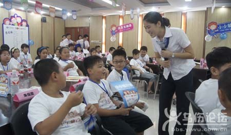 這幾天,50多位年齡在9至12歲的孩子,在興業(yè)銀行義烏分行親身體驗(yàn)認(rèn)識(shí)各國(guó)貨幣、了解銀行卡的妙用、現(xiàn)場(chǎng)體驗(yàn)銀行大堂經(jīng)理等各種金融活動(dòng)。 據(jù)了解,“小小銀行家”暑假社會(huì)實(shí)踐活動(dòng),讓孩子們利用假期,以崗位體驗(yàn)的方式走進(jìn)銀行,為他們提供一個(gè)普及金融知識(shí)、培養(yǎng)責(zé)任感、樹(shù)立理財(cái)意識(shí)和展示自我的平臺(tái)。這是銀行工作人員正在向孩子們介紹銀行卡的作用。 |