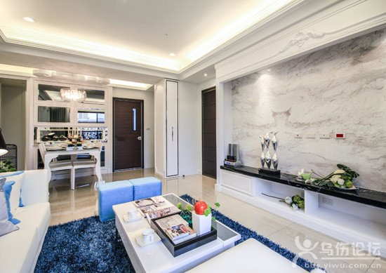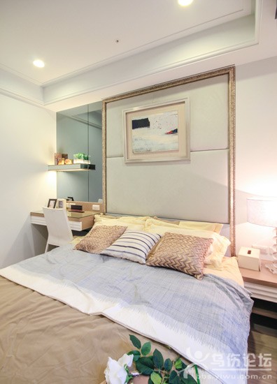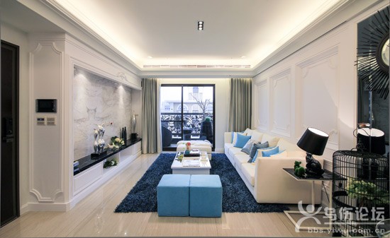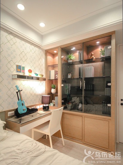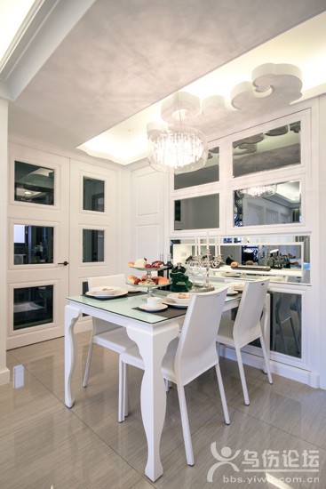 | 設(shè)計(jì)思路:設(shè)計(jì)師對色彩、線條、比例的掌控,以及各種材質(zhì)、軟件的靈活運(yùn)用,促成了在空間設(shè)計(jì)上的多元風(fēng)貌,著重于流暢動(dòng)線的安排,形成完整的機(jī)能布局,更重要的是精確掌握居住所需,搭配適度的裝置主題。 設(shè)計(jì)TIPS:開窗帶起透視美 以開窗為基準(zhǔn),客廳四周的直線仿佛延伸至窗外,最終聚焦于遠(yuǎn)方的虛點(diǎn)上,讓室外美景一覽無余。很棒的一個(gè)視覺延伸! 設(shè)計(jì)TIPS:清幽藍(lán)調(diào) 在以白色為背景的空間里,將藍(lán)調(diào)作為想象式的色彩,揮灑在白色語系中,演繹出室內(nèi)獨(dú)有的一片新古典天空。 PART2:餐廳設(shè)計(jì) 設(shè)計(jì)TIPS:玻璃幕墻巧隔斷 設(shè)計(jì)師用灰黑色系玻璃幕墻背景,巧妙地隔斷出客廳與餐廳兩個(gè)空間,再加太陽外觀的掛鐘與兩個(gè)鐵質(zhì)鳥籠裝飾,增加了空間藝術(shù)感。 設(shè)計(jì)TIPS:吊頂設(shè)計(jì) 餐廳吊頂依舊以白色為主打,富有創(chuàng)意的是采用了一片“祥云”作為天花板圖案,承襲了“新古典”風(fēng)貌。 PART3:臥室設(shè)計(jì) 設(shè)計(jì)TIPS:線條彰顯新古典 臥室無處不在簡單而美觀的直線條設(shè)計(jì),從桌椅到背景墻,從窗戶到床頭燈,深色系的線條透著古典氣息。 設(shè)計(jì)TIPS:巧用飄窗當(dāng)書桌 設(shè)計(jì)師根據(jù)業(yè)主愛好閱讀的習(xí)慣,將臥室飄窗改造成可供閱讀的桌臺(tái),采光絕無問題,還可以欣賞窗外美景。 設(shè)計(jì)TIPS:燈光營造溫馨氛圍 燈光設(shè)計(jì)至關(guān)重要,臥室中的床頭燈、化妝臺(tái)燈、天花板燈的共同“照耀”下,給臥室營造了溫馨氛圍。 設(shè)計(jì)TIPS:立柜幫助收納 該臥室主任有較多喜好,這就需要有足夠空間的收納來收藏物品,原木色立式收納柜很好地解決了這個(gè)問題。 |