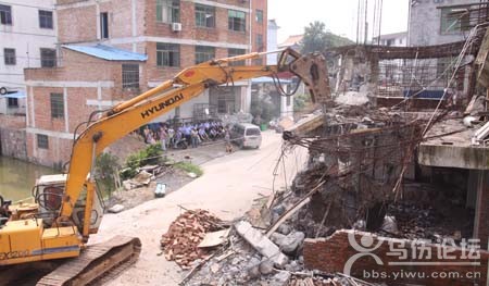 8月29日上午,稠城街道對堂閣村一民房的非法擴(kuò)建部分進(jìn)行了拆除。 據(jù)了解,房屋所有人王某原有2層3間半沙土結(jié)構(gòu)房屋,于1992年取得了面積約為89平方米的土地使用證。2012年3月,王某將原有房屋拆除并重新擴(kuò)建,經(jīng)有關(guān)部門勘察發(fā)現(xiàn),新房超出舊房登記約57平方米,超出部分分別位于舊房的東側(cè)和南側(cè)。 2013年11月中旬,國土資源局對王某非法占用土地建設(shè)住宅行為下達(dá)了《行政處罰決定書》,并于今年6月底得到了法院強制執(zhí)行的許可。8月19日,稠城街道發(fā)布了強制拆除的公告。 據(jù)介紹,考慮到房屋所有人王某只有這么一幢房屋的實際情況,如何拆除房屋擴(kuò)建部分并減少對房屋結(jié)構(gòu)的破壞成了拆除工作的難點。對此,稠城街道和有關(guān)部門進(jìn)行多次探討研究,最終拿出了先切割再拆除的方案。 |