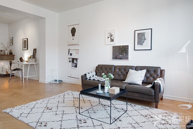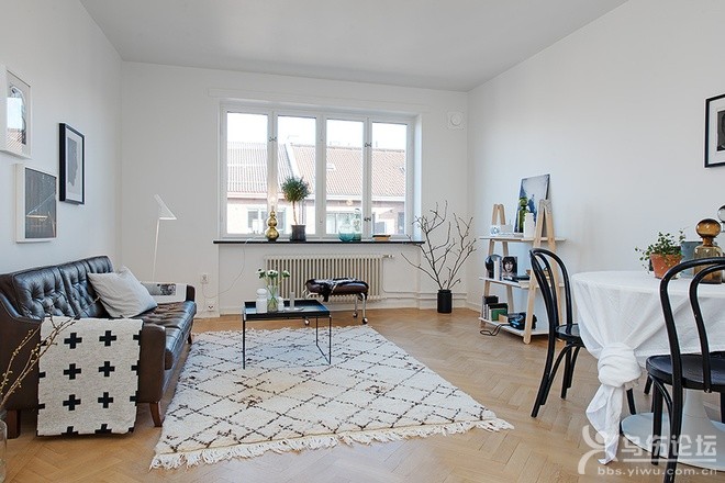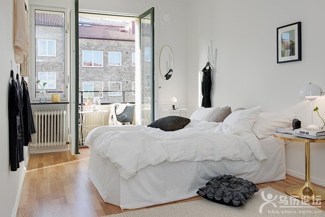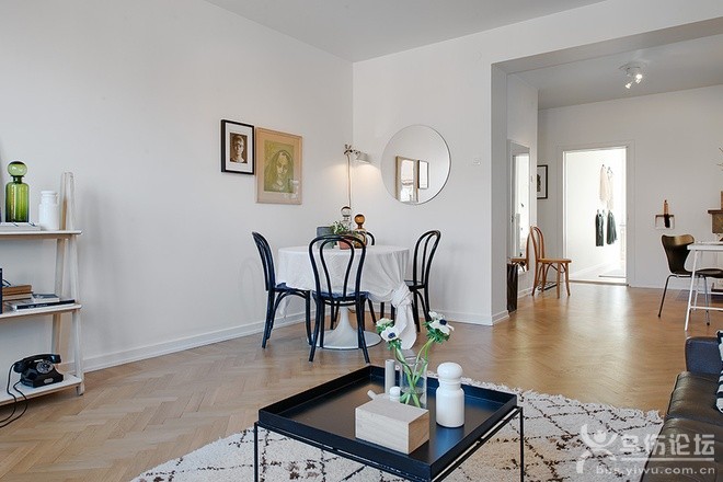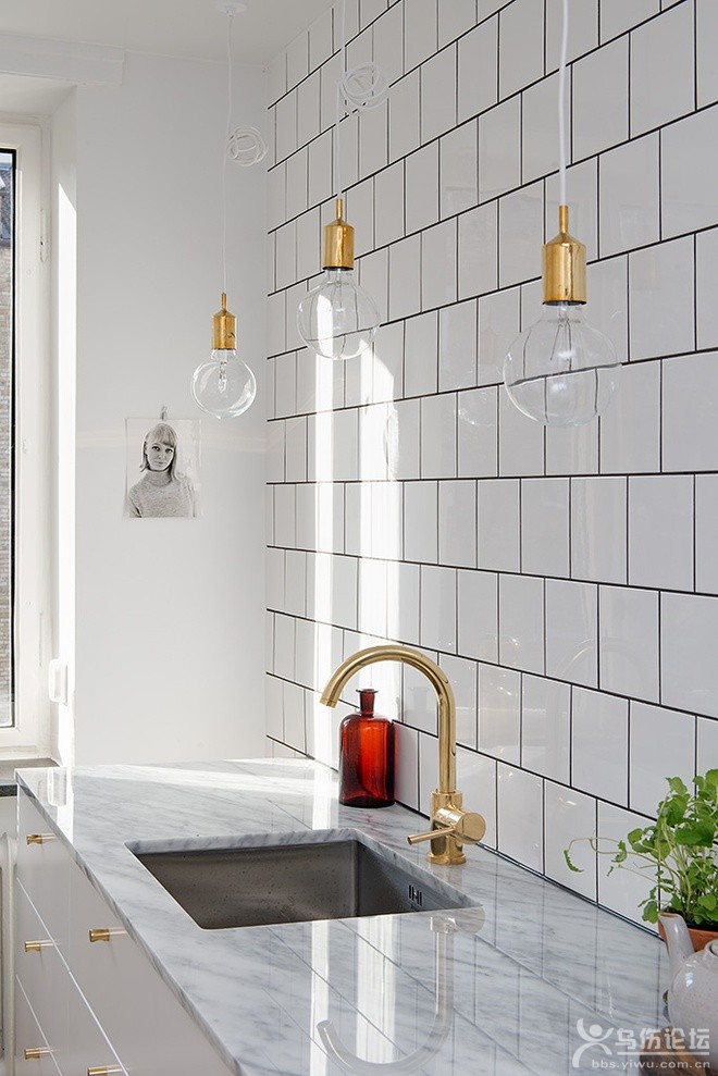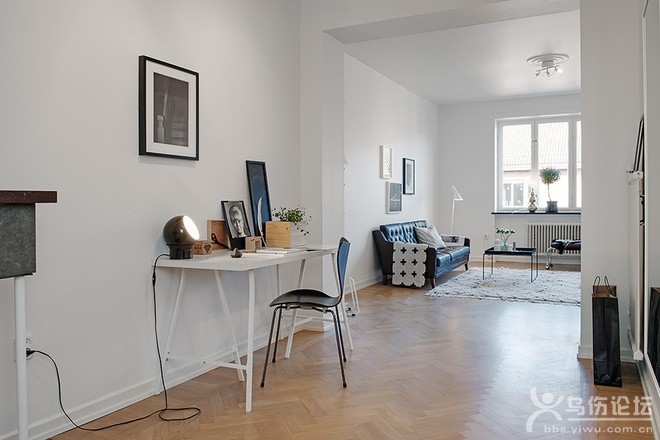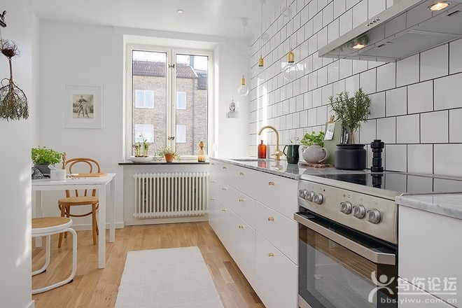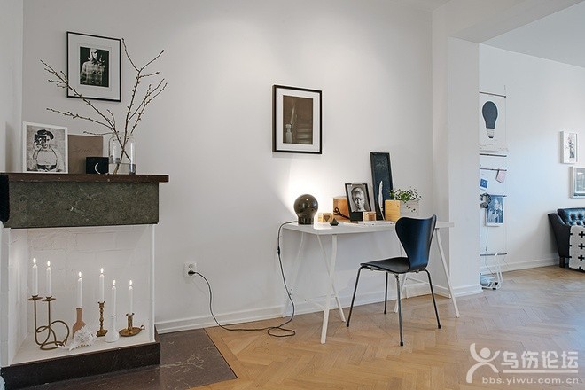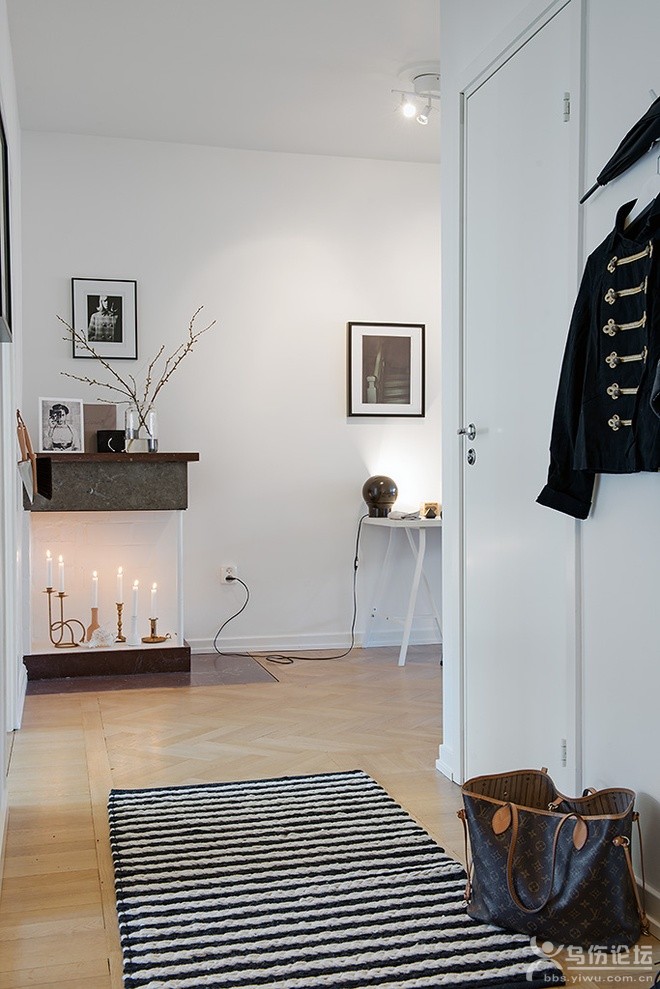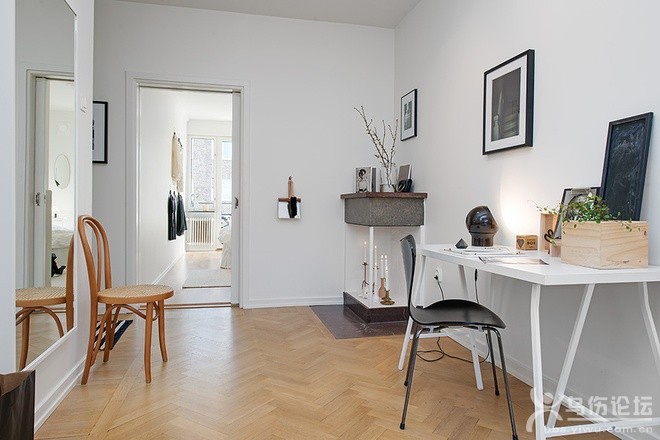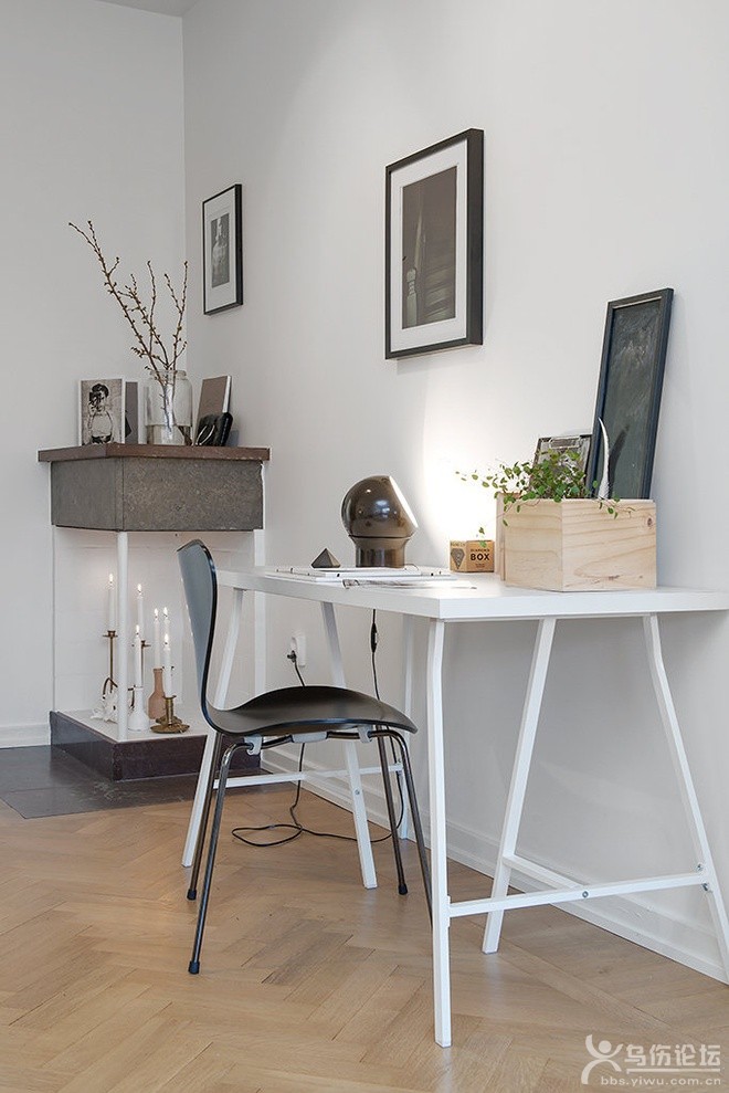 | 這個(gè)60平米的北歐小公寓帶著上世紀(jì)30年代的新古典主義色彩。充足的自然光線,大窗戶,經(jīng)典的人字鑲木地板,豐富的天花板,壁爐(目前已經(jīng)不再使用),零號(hào)的存儲(chǔ)空間。新風(fēng)格的裝修意識(shí)也同時(shí)在這里有所體現(xiàn),你可以發(fā)現(xiàn)帶著白色光澤的文件柜,大理石臺(tái)面,寬敞的臥室,以及一個(gè)面臨著庭院的可愛(ài)陽(yáng)臺(tái)。2011年重新裝修的浴室,用白色和灰組成了永恒經(jīng)典的色彩。白色的廚房與白色光框的櫥柜,加上黃銅色的配件,仿佛純白撞上了土豪金,塑造出一個(gè)非常開(kāi)放時(shí)尚的形象。 |