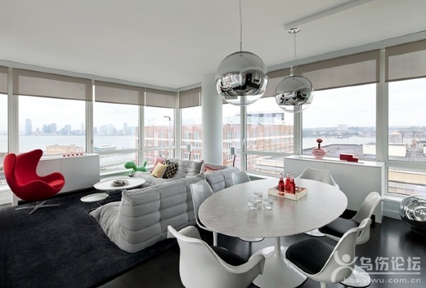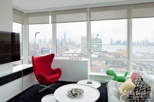 | 很多擁有一定經(jīng)濟能力的單身族,由于工作及生活節(jié)奏和家人較不一致,大部份人已經(jīng)從家里搬出,租間套房或公寓,過著自由獨立的單身生活。如果你正是單身一族,并希望擁有更具質量的生活,相信你對自己的居家環(huán)境肯定也有很多的獨到見解。來自德國的 Steilish LLC 就為單身貴族們提供很棒的示范!首先,這間位于紐約的公寓擁有很棒的視野,采光超棒的落地式窗戶讓人超羨慕!在開放式的客餐廳,可選擇高度較為低矮的家具、透光窗簾,讓空間開闊感十足;擁有流線外型的北歐經(jīng)典家具,搭配灰色基調(diào)的空間,竟有一種時尚未來感!想必是位摩登的男主人吧。 |