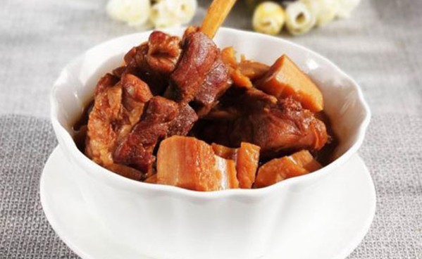 原料:寸骨500克、蓮藕300克、姜片、蔥段、大料、料酒、生抽、胡椒粉、鹽、雞精、糖、蠔油。