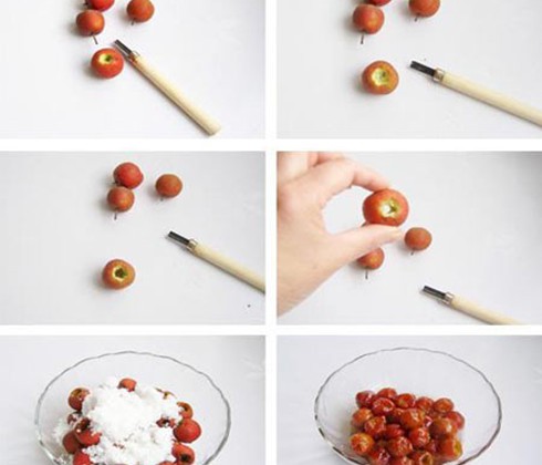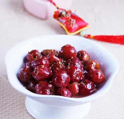 桂花炒紅果,聽說曾是清朝宮廷小吃,也是北京的特色小吃之一。其實不管是什么時候的,也不管是那兒的小吃,只要口味好,能受到廣大普通老百姓歡迎和喜歡的就是美味。 其實老北京的炒紅果和北京的炒肝一樣,雖然叫炒紅果,并不是用鍋炒出來的,而是用糖水煮出來的,一點油都沒放。只是名字里有個“炒”字而已。而且做炒紅果還不能用鐵鍋煮,可選用砂鍋或不銹鋼鍋,因為紅果里含有一種果酸,果酸遇鐵會起化學(xué)變化,產(chǎn)生一種低鐵化合物,人吃了以后會引起惡心、嘔吐的輕微中毒。