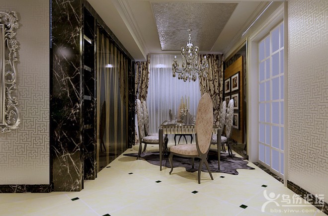 【業(yè)主檔案】三口之家,年輕夫妻,有一個(gè)小公主。 【業(yè)主要求】要求低調(diào)奢華,同時(shí)又充滿商務(wù)風(fēng)情。 【設(shè)計(jì)說明】 客廳:從顏色上以黑色為主,營(yíng)造了時(shí)尚而低調(diào)的大方向感覺,加以復(fù)雜的造型和變換的材質(zhì)搭配,盡顯奢華品質(zhì),客廳吊頂墜以水晶吊墜,是空間的一大特性和點(diǎn)睛之筆。 臥室:選材上以淺色為主色調(diào),營(yíng)造溫馨的臥室環(huán)境。 餐廳:銀箔壁紙為主打基調(diào),木質(zhì)地板為底為女主人留白,作為家居生活的溫馨照片墻,頗具情調(diào)。 既具金屬酷感,又具有后奢高調(diào)風(fēng)格,風(fēng)格本身注重表現(xiàn)材料的質(zhì)感和色彩設(shè)計(jì)搭配,整體空間色彩以深色系為主,略加深色以點(diǎn)綴,造成商務(wù)氣息及華美感兼具的特有家居空間,彰顯出戶主的高品質(zhì)生活。 |