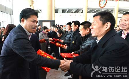 市委書(shū)記李一飛給市場(chǎng)經(jīng)營(yíng)戶(hù)送上春聯(lián)。 市長(zhǎng)盛秋平給市場(chǎng)經(jīng)營(yíng)戶(hù)送上春聯(lián) 鑼鼓鏗鏘、龍獅送福、歌曲悠揚(yáng)……昨日,國(guó)際商貿(mào)城、篁園服裝市場(chǎng)及國(guó)際生產(chǎn)資料市場(chǎng)迎來(lái)羊年新春開(kāi)市,市場(chǎng)內(nèi)外暖意融融,喜氣洋洋,經(jīng)營(yíng)戶(hù)和客商臉上都洋溢著燦爛的笑容。 上午9時(shí)許,市領(lǐng)導(dǎo)李一飛、盛秋平、陳秀仙、宋英豪、葛國(guó)慶、斯建民、季金甫、陳小忠等,先后來(lái)到國(guó)際商貿(mào)城、篁園服裝市場(chǎng)及國(guó)際生產(chǎn)資料市場(chǎng),為廣大市場(chǎng)經(jīng)營(yíng)戶(hù)和企業(yè)家送春聯(lián),祝愿大家生意興隆、財(cái)源廣進(jìn)。 在國(guó)際商貿(mào)城五區(qū)市場(chǎng),市委書(shū)記李一飛發(fā)表了熱情洋溢的新春致辭,代表市四套班子向廣大市場(chǎng)經(jīng)營(yíng)戶(hù)和企業(yè)家送上新春祝福。他說(shuō),過(guò)去的一年,在社會(huì)各界的關(guān)心支持和全市上下的共同努力下,我市國(guó)際貿(mào)易綜合改革、經(jīng)濟(jì)社會(huì)轉(zhuǎn)型發(fā)展取得了令人自豪的成績(jī)。市場(chǎng)采購(gòu)貿(mào)易方式正式落地、保稅物流中心(B型)封關(guān)運(yùn)行、航空口岸正式開(kāi)放,以及義烏至馬德里的“義新歐”國(guó)際鐵路集裝箱班列開(kāi)通、電子商務(wù)蓬勃發(fā)展等,都為整座城市的經(jīng)濟(jì)發(fā)展帶來(lái)了新的活力、新的源泉。希望各位企業(yè)家、廣大經(jīng)營(yíng)戶(hù)進(jìn)一步樹(shù)立信心,凝心聚力共同推動(dòng)市場(chǎng)持續(xù)繁榮發(fā)展,打造我們自己的“百年老店”。 李一飛指出,新的一年昭示著新的期望,希望大家與時(shí)俱進(jìn)轉(zhuǎn)換經(jīng)營(yíng)方式,走線上線下融合發(fā)展之路。下一步,我市還將大力培育進(jìn)口市場(chǎng),把義烏打造成為海外日用消費(fèi)品進(jìn)入中國(guó)市場(chǎng)的“橋頭堡”,實(shí)現(xiàn)出口和進(jìn)口“兩條腿走路”;積極培育現(xiàn)代物流,讓現(xiàn)代物流業(yè)為商貿(mào)業(yè)的繁榮提供更加有力、強(qiáng)勁的支撐;同時(shí),還將在小商品市場(chǎng)周邊打造絲路新區(qū)、國(guó)際陸港,為市場(chǎng)繁榮搭建新平臺(tái)、提供新空間,為城市轉(zhuǎn)型和經(jīng)濟(jì)持續(xù)繁榮提供不竭動(dòng)力。 一副副喜慶春聯(lián)貼門(mén)頭,一聲聲恭賀新年不絕口……新春開(kāi)市第一天,抬眼望去,市場(chǎng)內(nèi)外一片紅火景象,裝扮吉祥喜慶,商品琳瑯滿(mǎn)目,義烏與五湖四?蜕坦蚕頍o(wú)限商機(jī)。 |