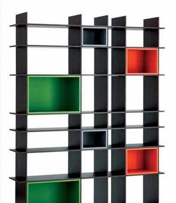 幾何書(shū)架 這個(gè)書(shū)架無(wú)疑是在向蒙德里安經(jīng)何典作品致敬,幾何切割以及大膽的配色,滿足對(duì)不同尺寸的需求,表達(dá)藝術(shù)的同時(shí)絕對(duì)符合實(shí)用主義。