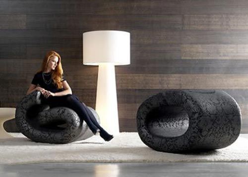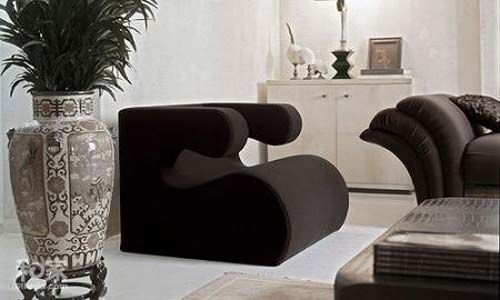 這是一款彈性十足的蛋卷沙發(fā)。沙發(fā)上有一道“裂縫”將它分為兩部分,當(dāng)你倚上去的時(shí)候,沙發(fā)會部分往下凹陷,而這剩下的保持原狀的另一邊則變身為扶手。其舒適度尚且不做討論,作為裝飾和模特拍照道具確實(shí)頗具特色。