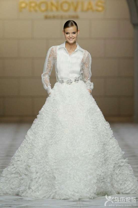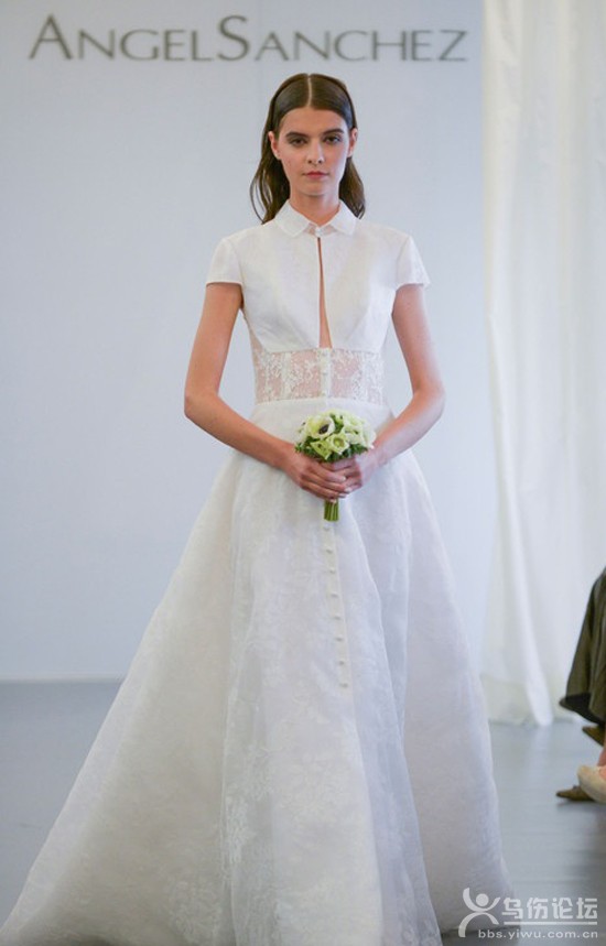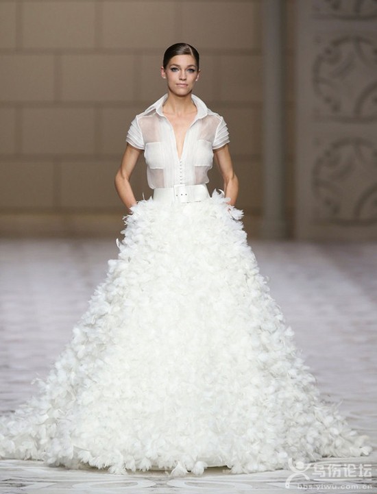 導(dǎo)語:你果敢率性不喜歡太公主范兒的婚紗?好說!現(xiàn)在婚紗玩混搭正大行其道,你可以將襯衫與長裙混搭出一件既干練簡潔又不輸氣質(zhì)的婚紗來,大方帥氣地出嫁。 歐根紗袖襯衫+大裙擺禮服襯衫混搭美裙只要掌握3點(diǎn): 雪紡襯衫+羽毛裙1、為了避免過于中性,可以選擇雪紡等具有透視效果的面料做襯衫,增加柔美的感覺。 透視襯衫+白色長裙 短袖襯衫+白色長裙2、襯衫要搭配長裙,并束在裙內(nèi),打造出上短下長的視覺效果。腰部系條寬腰帶強(qiáng)調(diào)腰身。 簡潔短袖襯衫+繁復(fù)羽毛長裙3、畢竟是婚紗,所以在裙子上可以做些裝飾效果,但整體上看要簡潔大方。因此可以選擇蕾絲面料、羽毛面料,或帶有褶皺效果的面料來增加視覺上的美感。 |